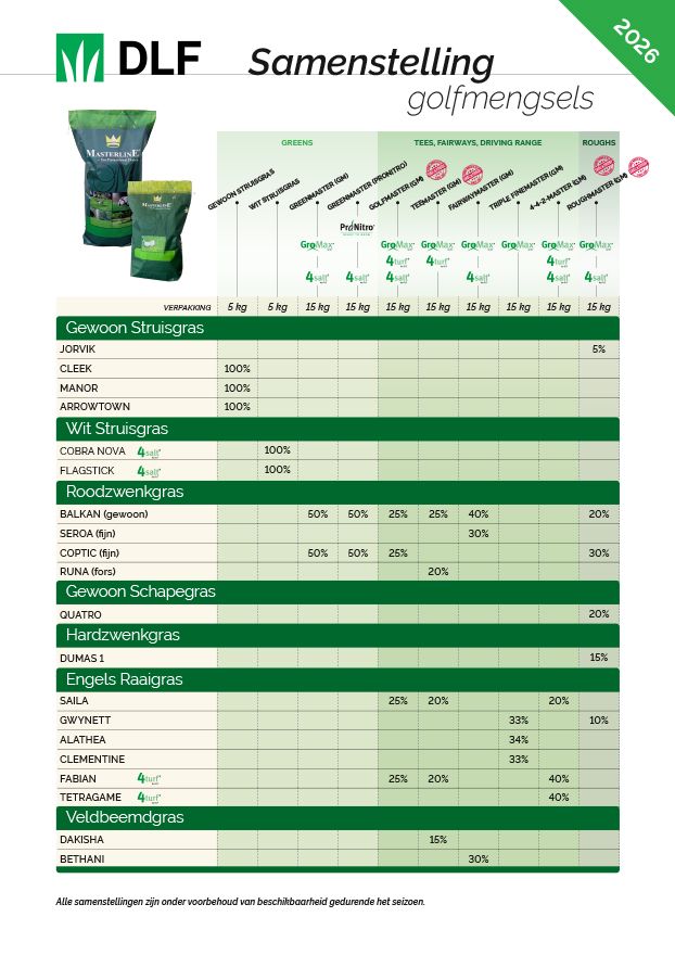 Leverancier DLF heeft de brochure van de graszaadmengsels voor u uitgebracht. U kunt deze bij ons opvragen U kunt deze bij ons opvragen of hier als pdf downloaden.